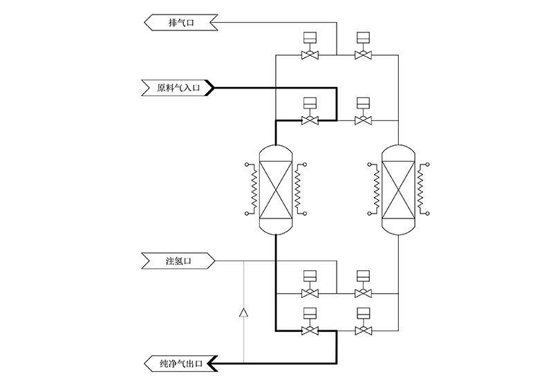 Nitrogen purifier EGS8 operates alternately in two modes-ambient temperature purification and heated regeneration—through two or more adsorption beds connected in parallel,with service life over 20 years.